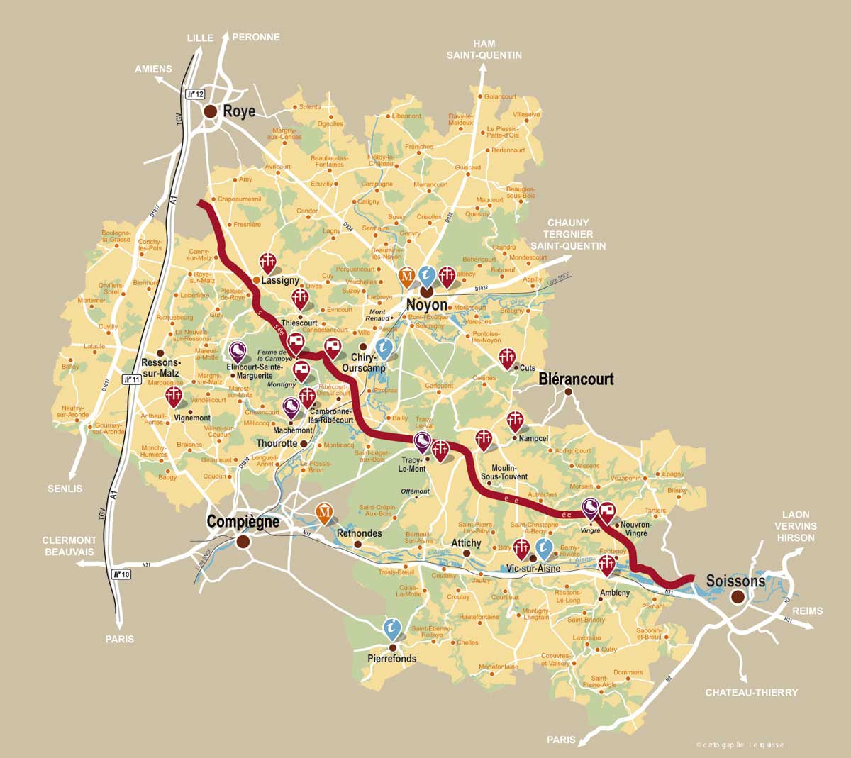 De Crapeaumesnil à La Ferté-Milon, en passant par Noyon, Rethondes et Vic-sur-Aisne, la Ligne Rouge vous propose la découverte d'un véritable musée à ciel ouvert des traces de la Première Guerre mondiale, autour de l'ancienne ligne de front. Le Musée Territoire 14-18 permet d'appréhender plusieurs aspects du conflit qui a façonné un paysage et marqué une population. Parcourez l'ancienne ligne de front et découvrez des sites exceptionnels liés à l'histoire du conflit : carrières ornées de sculptures d'époque, nécropoles, musées, champs de bataille, édifices, etc. grâce à des visites guidées, des randonnées ou des applications mobiles. Suivez la Ligne Rouge ! |